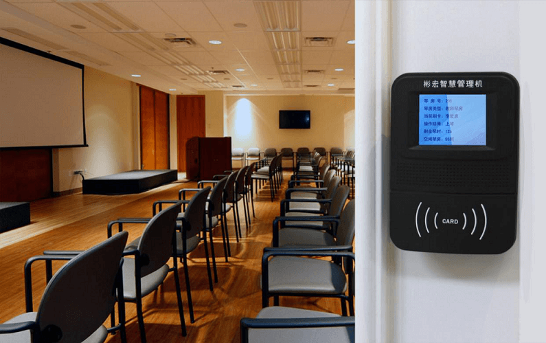 2.自带2.6英寸呼吸屏幕实时显示多媒体教室状态信息、当前操作用户信息及操作结果信息、当前用户本次可用时长、下一预约信息等。