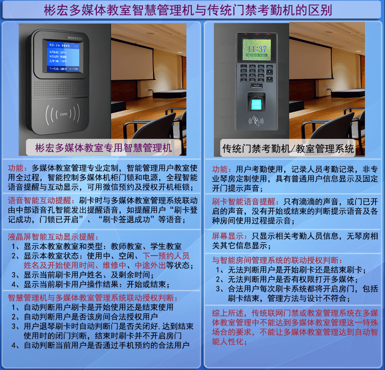 ▲Ebpay多媒体教室智慧管理机与传统门禁考勤机的区别
